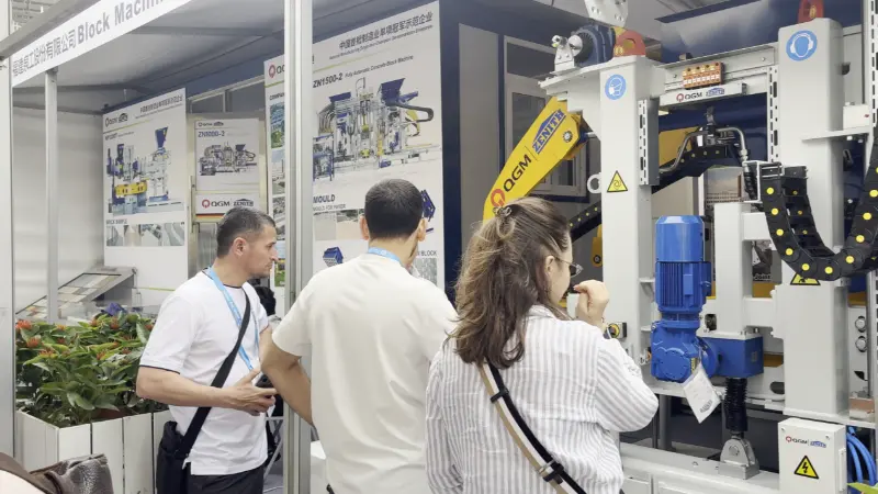 Ing pameran iki, Quangong Machinery Co., Ltd. nyiyapake area pameran njero ruangan lan ruangan, kanthi sistematis nyedhiyakake solusi sakabèhé saka peralatan R&D lan manufaktur cerdas kanggo aplikasi produk rampung liwat tampilan multi-dimensi lan komprehensif. Mesin ngecor produk konkrit ZN1000-2 minangka pameran kunci, bebarengan karo macem-macem spesifikasi lan jinis conto bata, kalebu bata paving, bata kothong, lan bata padhet, kanthi visual nuduhake kinerja unggul peralatan ing akurasi cetakan, kualitas produk, lan produksi macem-macem.