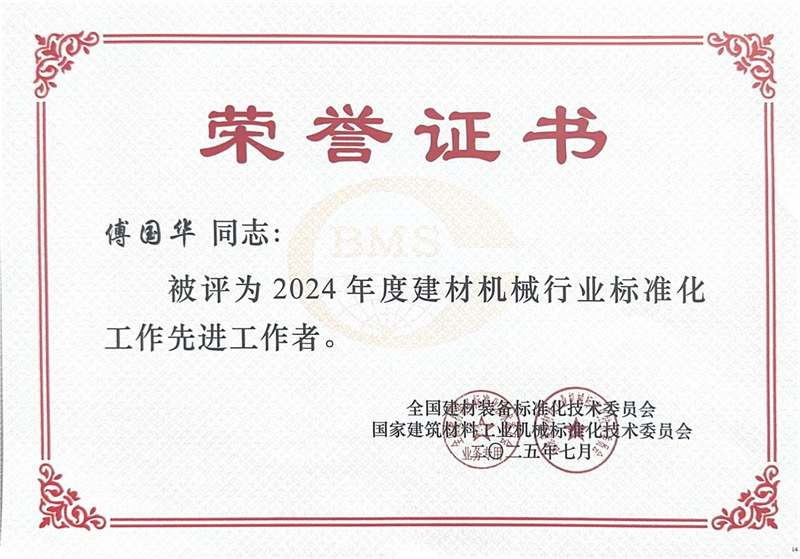 在同期举行的表彰环节中,365博彩网站股份被授予“2024年度建材机械行业标准化工作先进集体”称号,公司副总经理傅国华荣获“2024年度建材机械行业标准化工作先进工作者”称号。