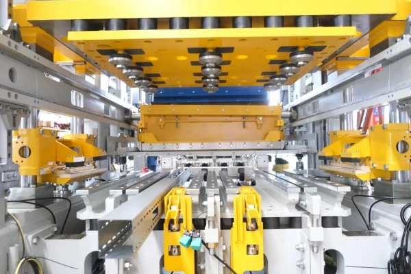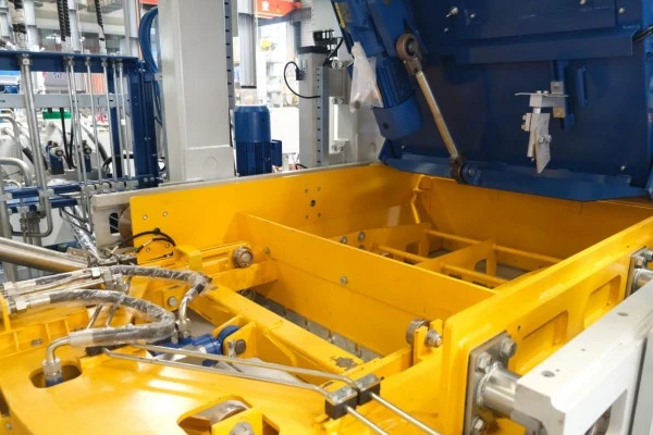 3 自动快速换模系统 策尼特的自动快速换模系统是基于多装置的联动配合,通过智能系统操作实现模具快速精确更换。模具转运至主机旁后通过吊装系统放置在快速换模装置上,系统通过控制各装置实现自动换模。换模过程中无需人工搬运与手动锁紧,定位等工序。